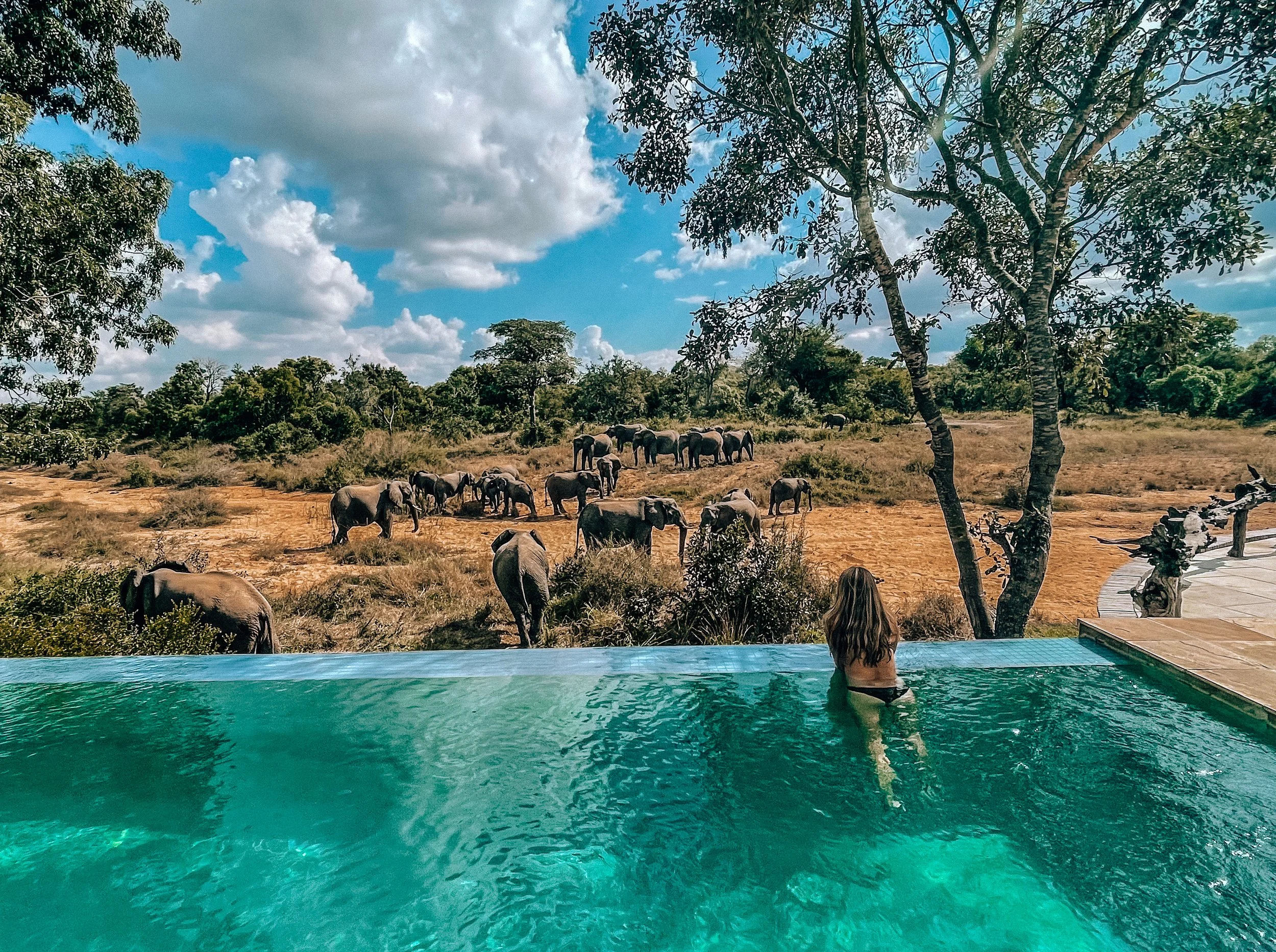 The infinity swimming pool overlooks the waterhole, and is the perfect spot for wildlife viewing while cooling off on a warm African afternoon.
